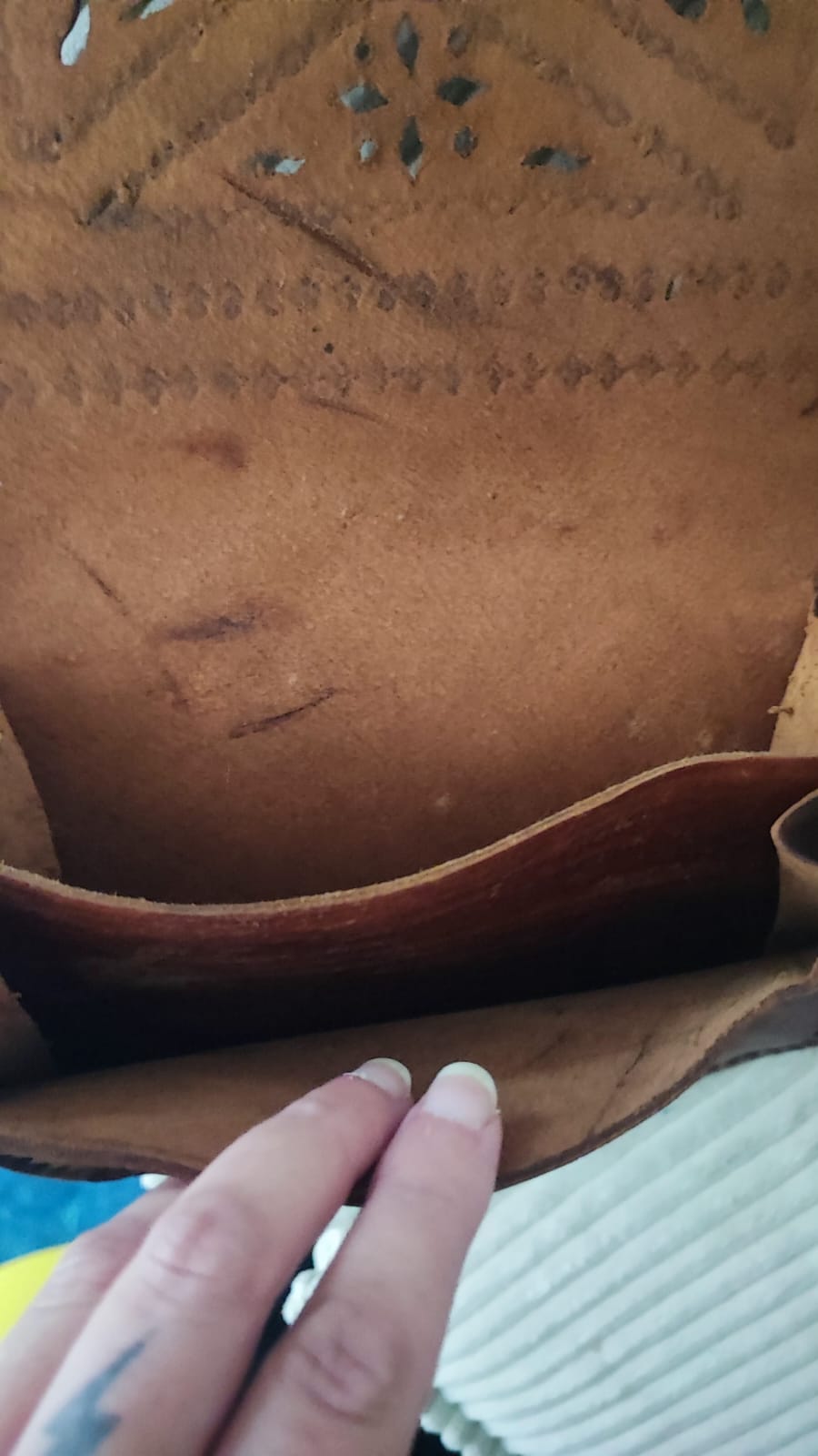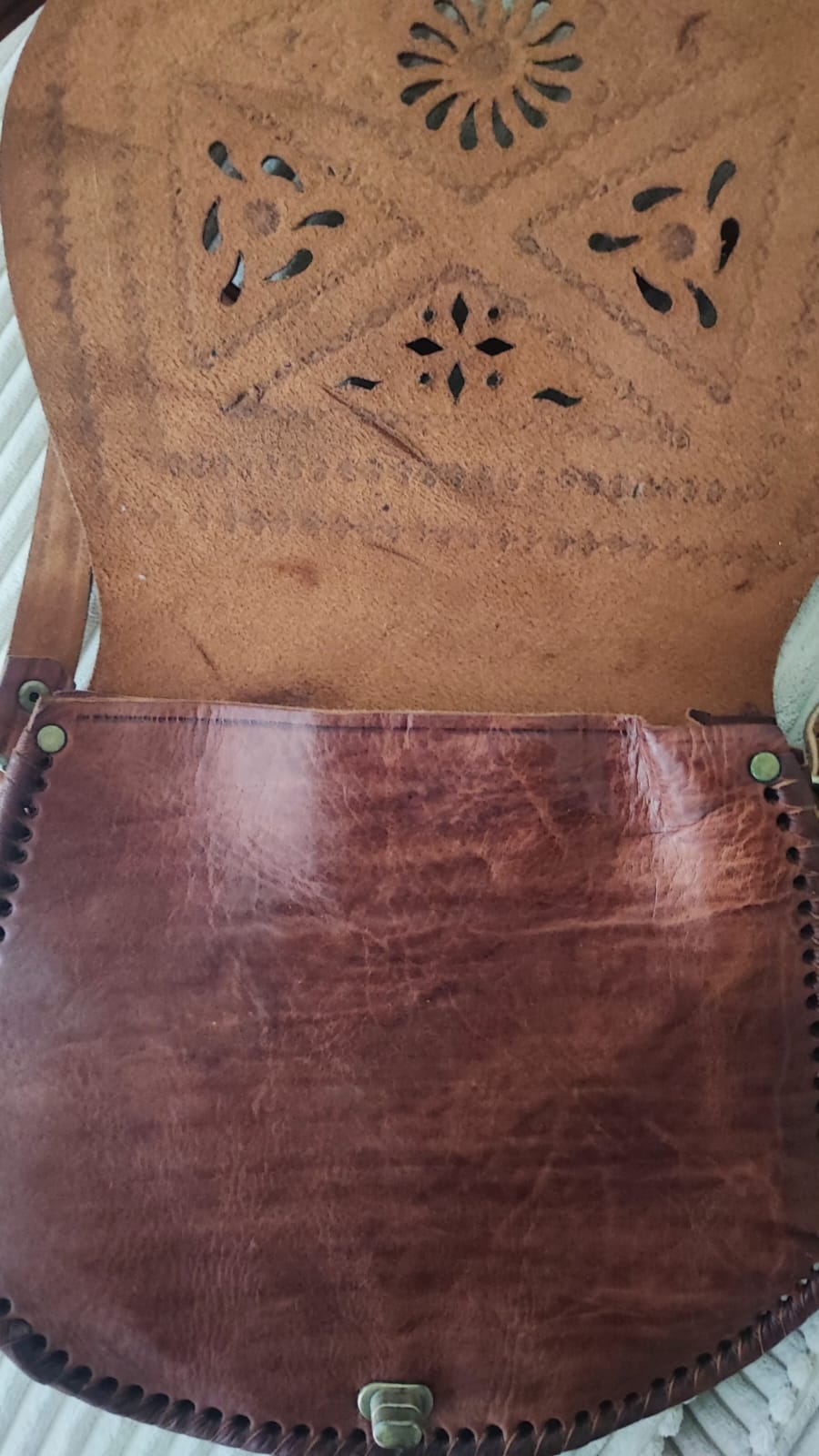 ♥ Echt leren schoudertas met open ornamenten (van restleer)